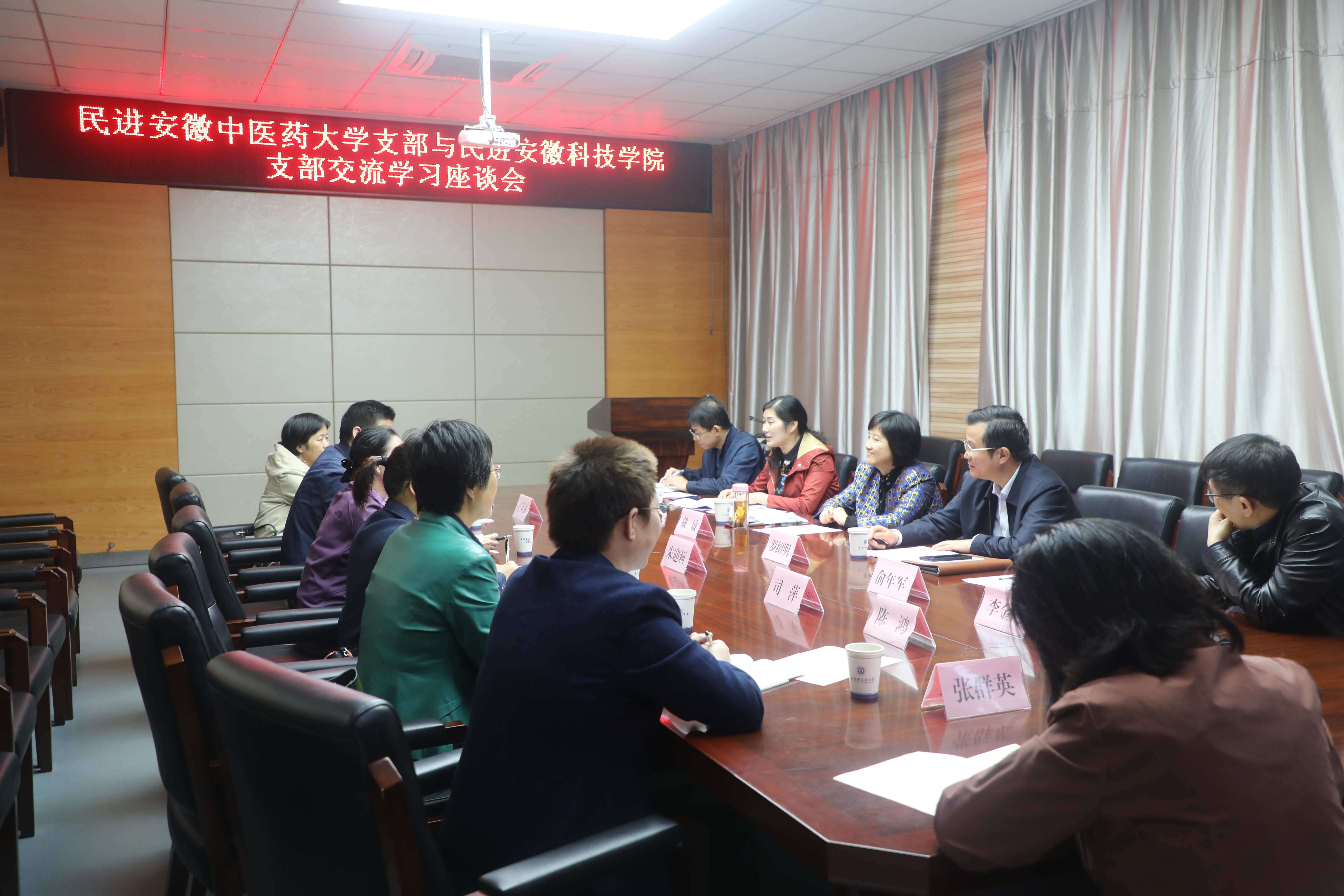 两校民进组织会员围绕高校民进基层组织自身建设、参政议政工作和社会服务工作等方面进行了广泛而深入的交流。交流学习会前,学校党委常委、宣传统战部部长罗绍明陪同民进安徽科技学院支部一行参观了学校校史馆和中药资源中心。(刘亚洲/文图 罗绍明/审核)