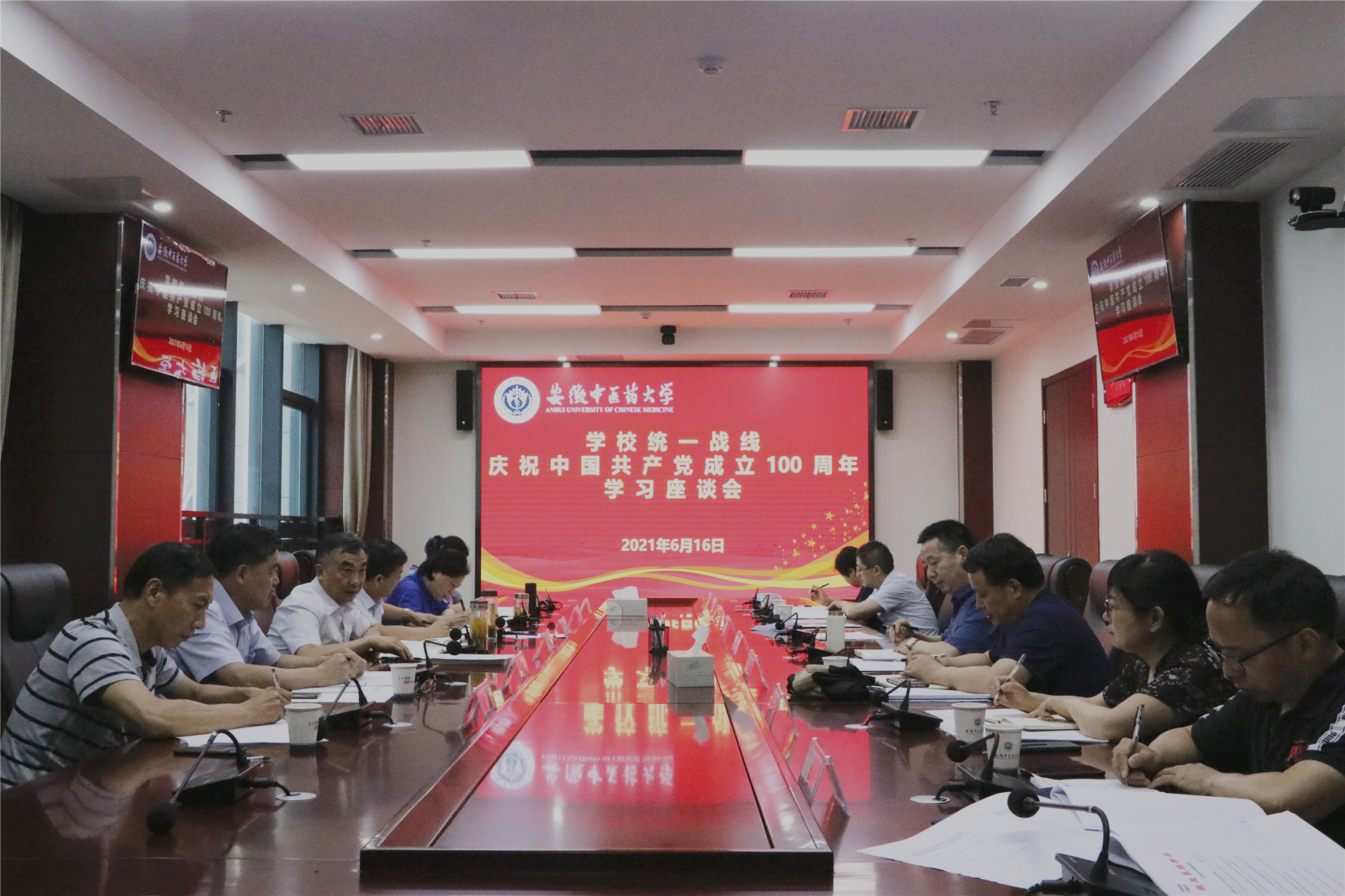 6月16日,学校党委召开统一战线庆祝中国共产党成立100周年学习座谈会。学校党委书记王先俊,校党委常委、宣传统战部部长吴达武出席会议。校内各民主党派、统战团体负责人,区以上人大代表、政协委员,党外副处级以上干部参加学习座谈会。