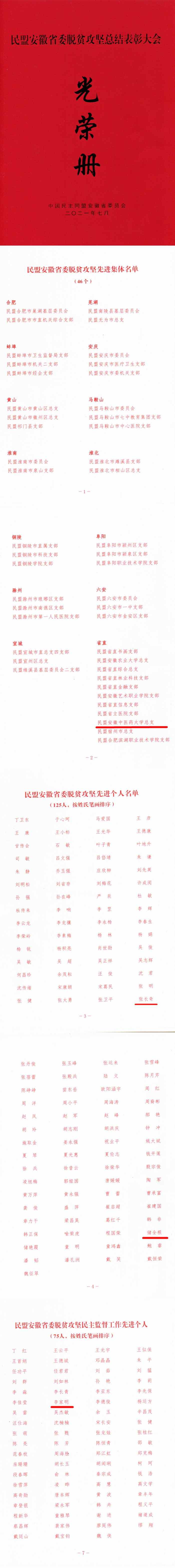 日前,民盟安徽省委召开脱贫攻坚总结表彰大会,对党中央、国务院实施脱贫攻坚以来我省民盟系统的先进集体和先进个人进行评选表彰。我校民盟总支获民盟安徽省委“脱贫攻坚先进集体”,总支主委储全根教授、支委张长奇主任医师获“脱贫攻坚先进个人”,副主委李家明教授获“脱贫攻坚民主监督工作先进个人”表彰。