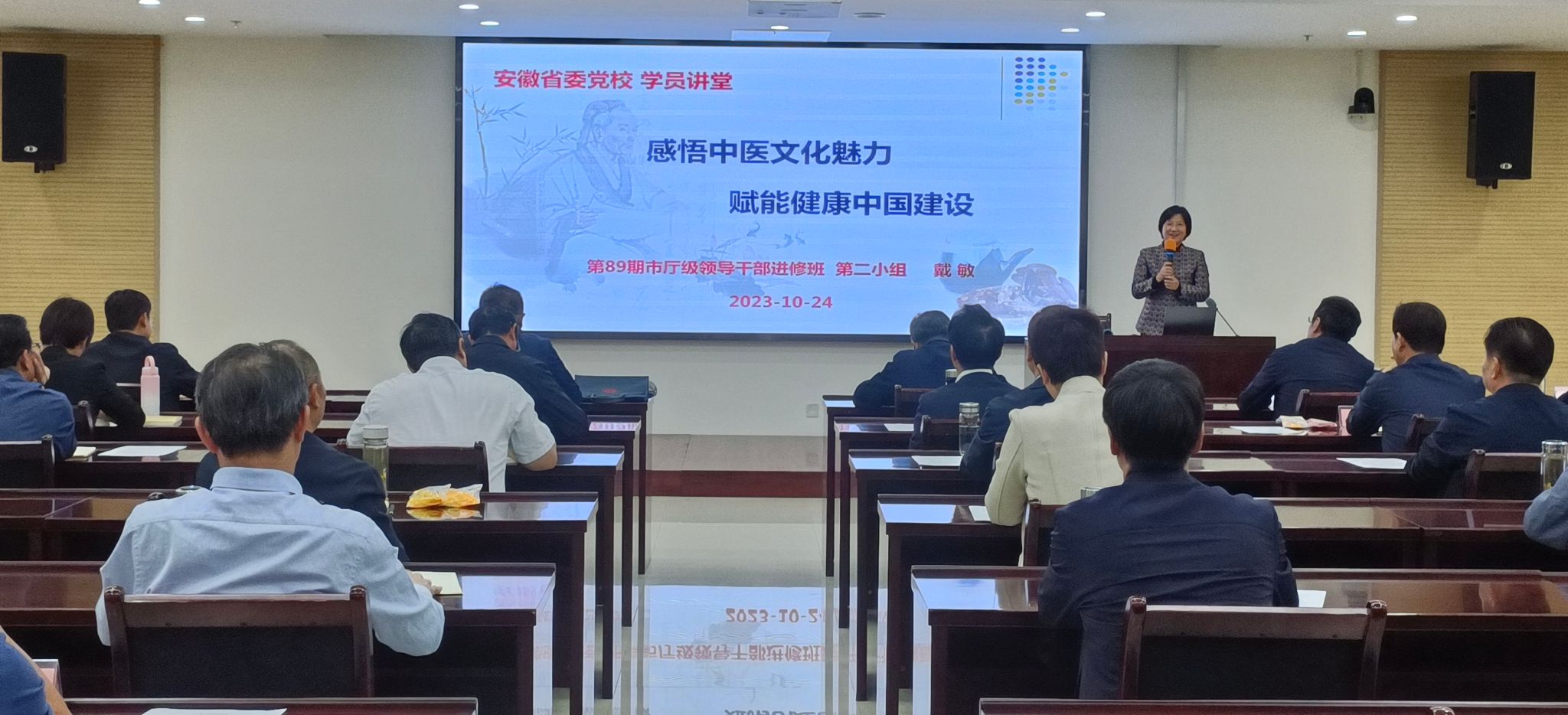 近日,学校副校长戴敏应邀在安徽省委党校市厅级领导干部进修班开展“感悟中医文化魅力 赋能健康中国建设”的专题讲座。