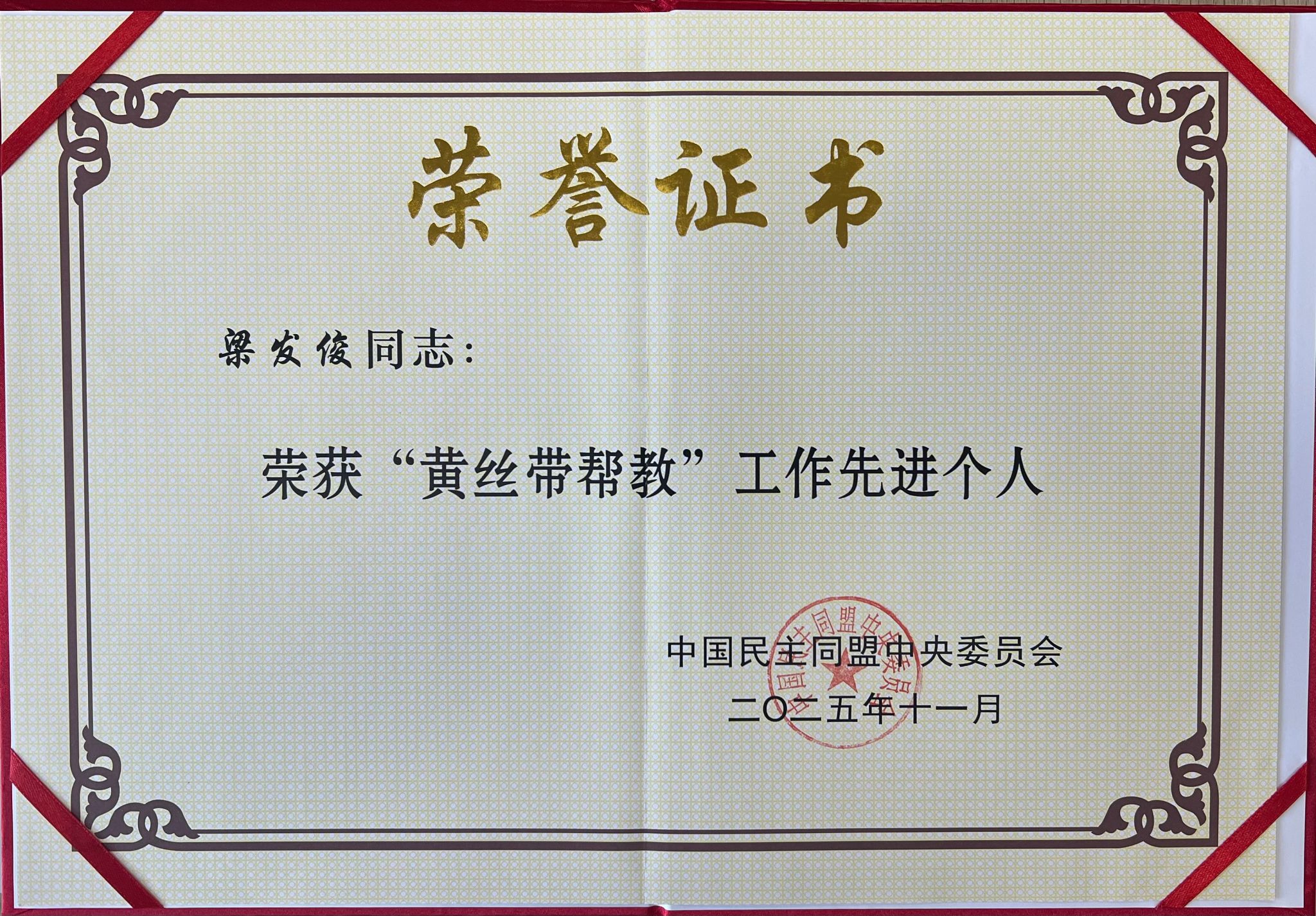 学校民盟总支梁发俊获民盟中央表彰
