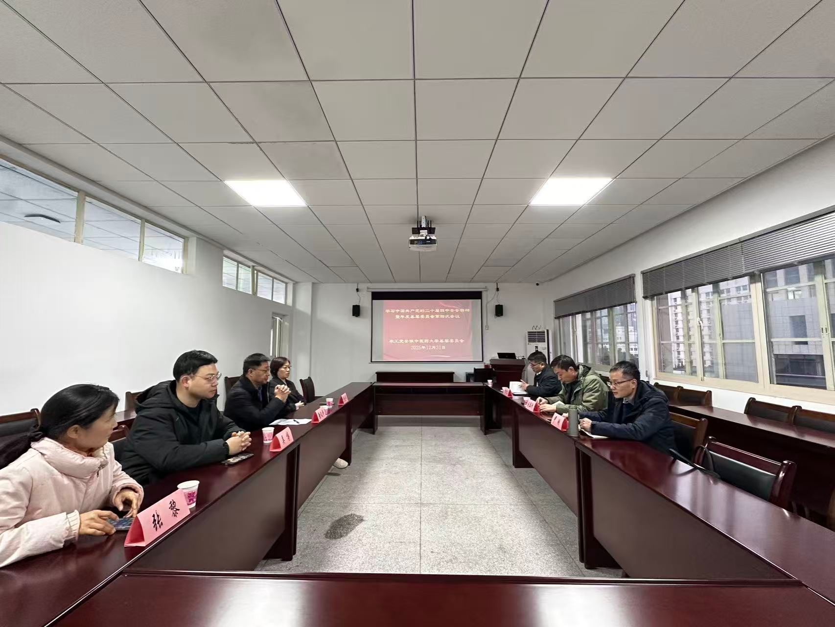 12月31日,农工党安徽中医药大学基层委员会召开学习中共二十届四中全会精神暨2025年度第四次工作会议,会议由学校农工党基层委员会主委尹刚主持,学校党委统战部副部长刘亚洲及学校农工党基层委委员参加会议。